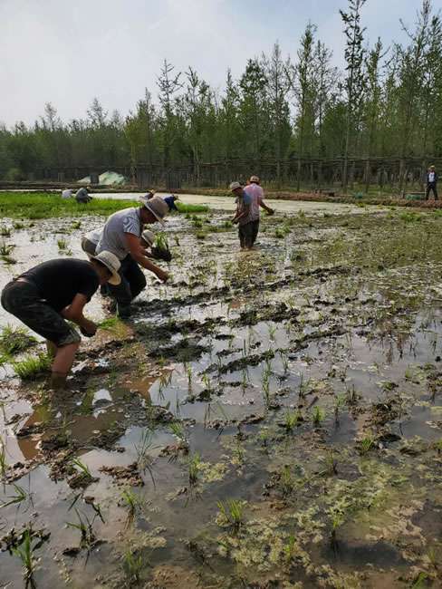 日前,银川凯乐生态旅游发展有限公司董事长梁雨、总裁谢俊率集团高级管理人员来到位于北京西四环外的锦绣大地生态园,在景色迷人的玉泉山山下,同志们挽起裤脚跃进田里,生态园农业技术员一边弓腰示范,一边讲解道“插秧是个技术活,将秧苗窝在虎口处,既要轻又要稳,用巧劲儿将秧苗抛在泥里,不能抛得太深,又要确保植保灌溉时,秧苗不漂浮在水面上。”